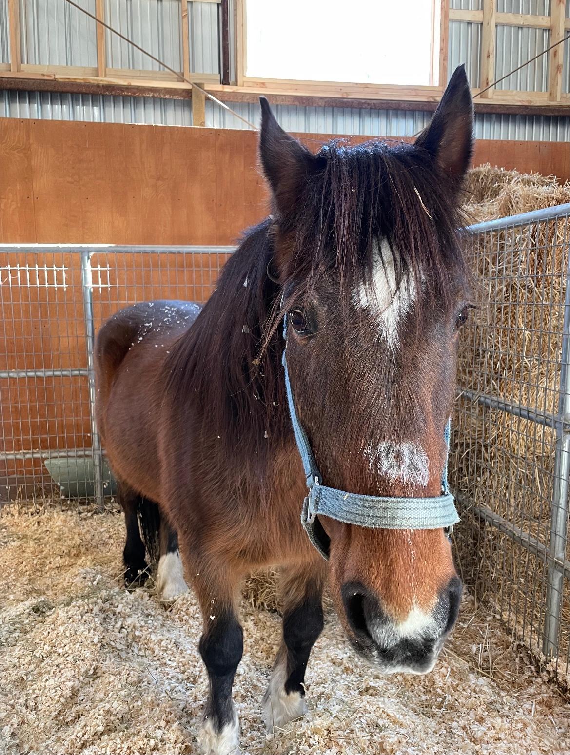 Since his rescue from a kill pen on June 25, 2010, we have been managing Bobby’s degenerative foot issues due to the permanent damage that he sustained due to the lack of care and treatment by his former handlers during the time he worked as an urban carriage horse in New York City. He wears special shoes as he has multiple issues with both of his front feet not the least of which are his deep flexor tendons which were shown to be torn the first time he underwent an MRI following his rescue. When he became injured and could no longer work, he was dumped at a slaughter auction.
