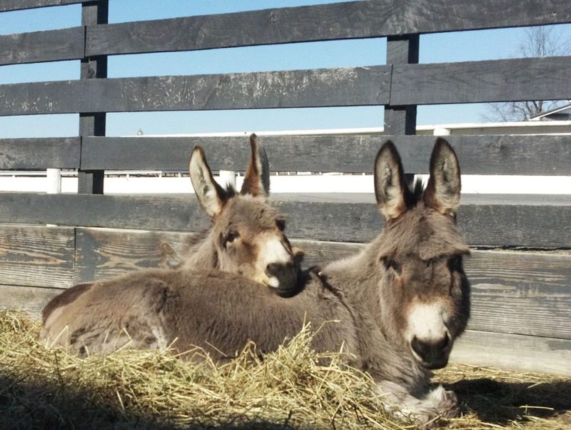However, by the end of 2012, Pat’s soundness issues were worsening, and we had to face the sad fact that we were going to have to humanely euthanize her at some point as there was no hope for recovery. We located an adorable Miniature Donkey named Alice to introduce to them so that Lisa would have a friend when Pat passed. The three girls bonded and when the time came to put Pat down, both Lisa and Alice were with her along with our staff as the vet put Pat to sleep.