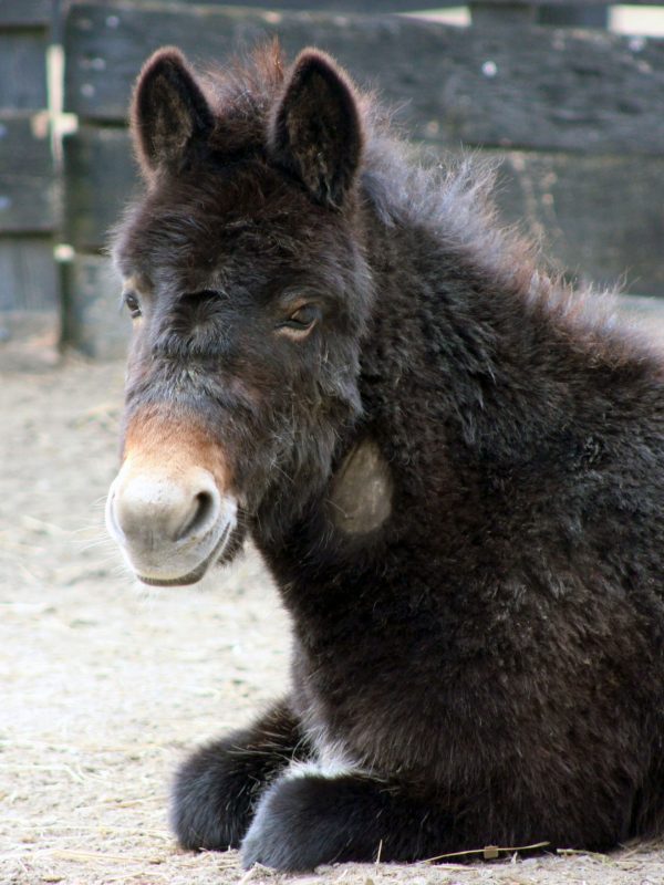 From: $50.00 / monthDaisy is a Spotted Miniature Mediterranean Donkey, a separate breed originating in the islands of Sardinia and Sicily. According to the Miniature Mediterranean Donkey Association, these small equines were bred for grueling work. There are woodblock pictures of them from the 18th century carrying water and supplies over mountainous areas and performing other arduous tasks. While they are practically extinct in their native land, they have since become popular pets in the U.S. due to their sweet and gentle disposition.