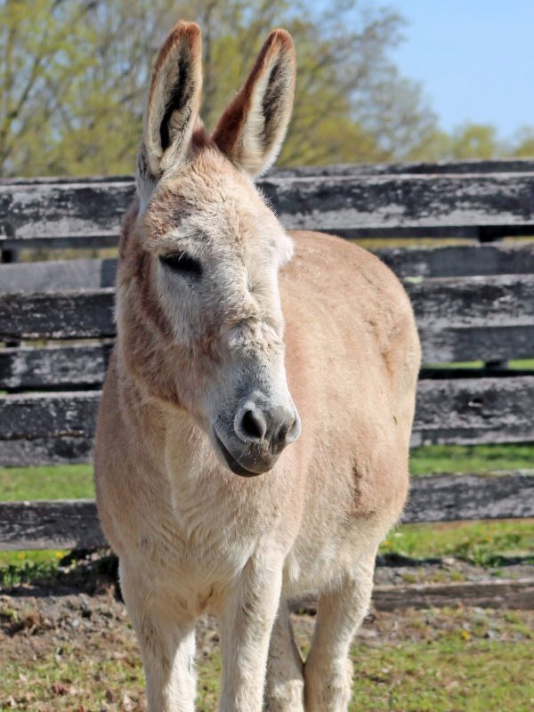 From: $50.00 / monthPensacola Pete, born around 2011, is a Standard Donkey who was abandoned along with three female donkeys in Pensacola, Florida. Sadly, this is not uncommon in the farmlands of the state, where, according to law enforcement, donkeys are used and then abandoned all the time by ranchers. The females were adopted in Florida, but no one wanted Pete. Fearing he would fall through the cracks, two friends of the organization asked us to help. Together, we rescued Pete, who arrived at the sanctuary on August 14, 2015. Pete is a real sweetheart! He spends his days with his friend Tina, a rescued mare, in our “Odd Couple” pasture.