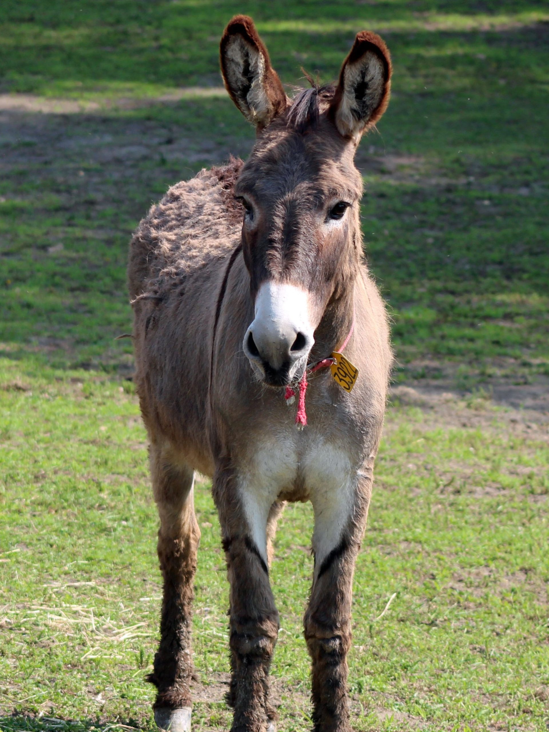 From: $50.00 / monthEmma is a Grey Standard Donkey born in 2020. She arrived here on August 18, 2022. As we do not have her exact date of birth, we have designated that day as her “Re-Birth-Day” and celebrate it every year. Our good friend Gerda Silver of Gerda’s Equine Rescue in Vermont rescued her out of the kill pens in Bastrop, Louisiana which are run by the notorious Stanley Brothers. They are responsible for sending thousands of equines to die in Mexican slaughterhouses every year and have been fined and brought up on charges numerous times for violating laws and committing crimes connected to their evil horse slaughter empire. The only way to shut them down once and for all is to ban the slaughter of all equines for any type of food – Period!