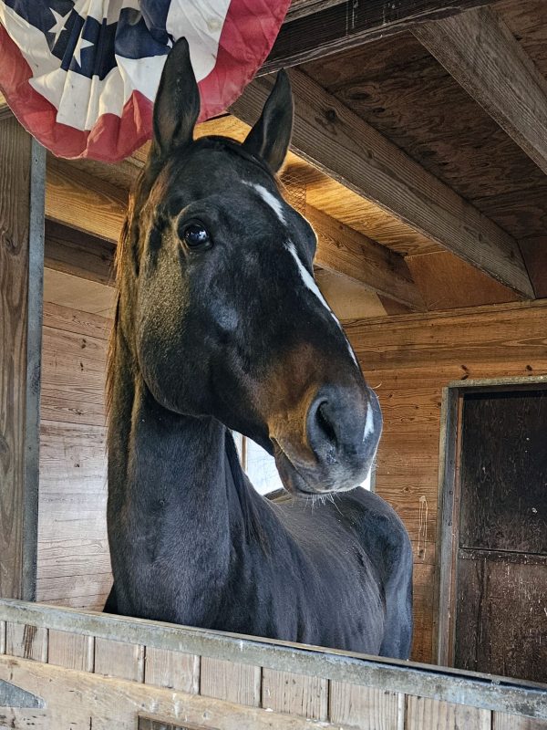 When we learned that “young Tom” needed to go to a sanctuary, we felt we had a good spot for him in a large pasture occupied by four geldings with one extra stall. He arrived at Equine Advocates on March 1, 2024. Within a few days, we began the introduction process gradually, where the horses met over a fence that separated two sections of that pasture. In this case, the intro only took a couple of weeks as Tom was eager to get to know the other geldings and become part of the herd. They were interested in getting to know him as well. Tom is as handsome as he is kind. He is also extremely frisky and loves to run and play. In other words, Tom Petty rocks!