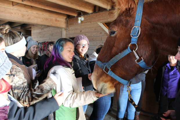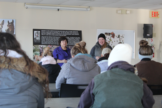 Founder & President Susan Wagner spoke with the students about managing a nonprofit, equine welfare, and ethics. The students also toured the sanctuary with Susan, Equine Care Manager Melissa Murray, and Assistant Equine Care Manager Courtney Preston.